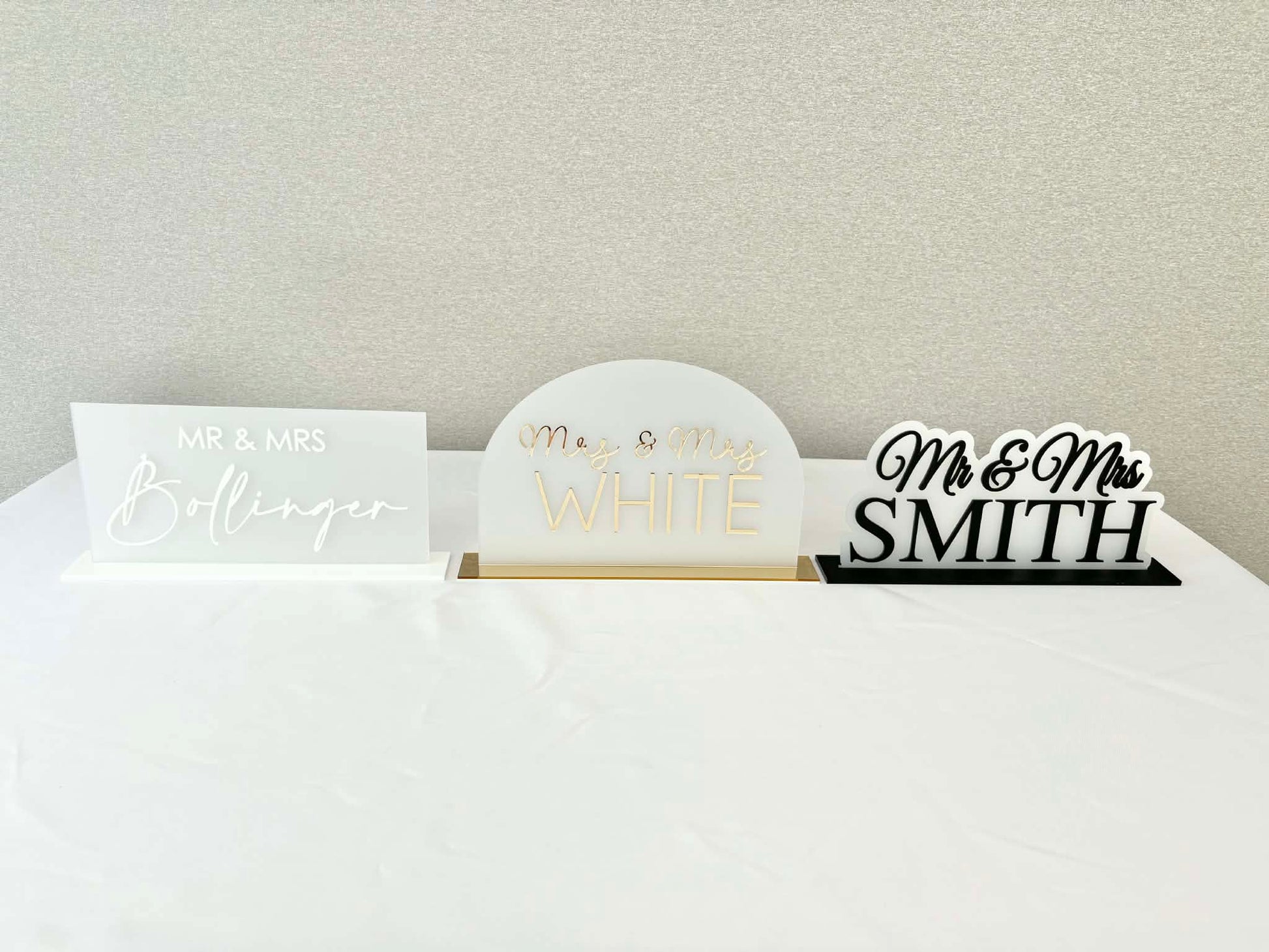 - Mr and Mrs with your new surname acrylic sign, different styles and colours available.